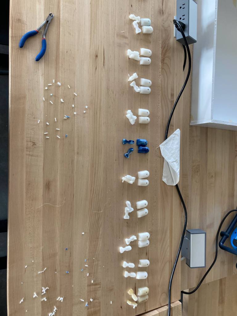 We performed draft analysis(we had 3° draft on all walls, holes and protrusions) on all the components, rearranged individual parts needed for assembly, simulated injection molding using SolidWorks Plastics for cooling time, ease of fill, max injection pressure, etc.