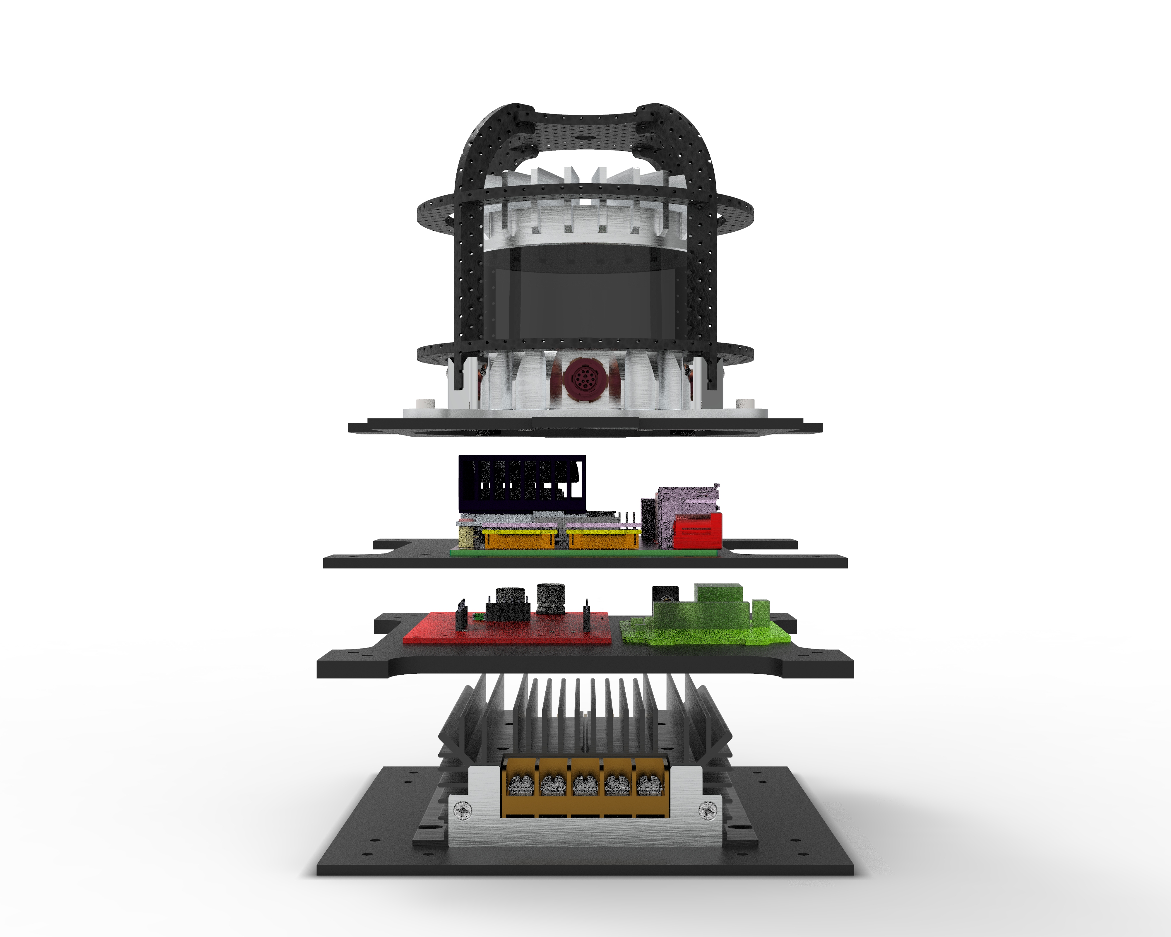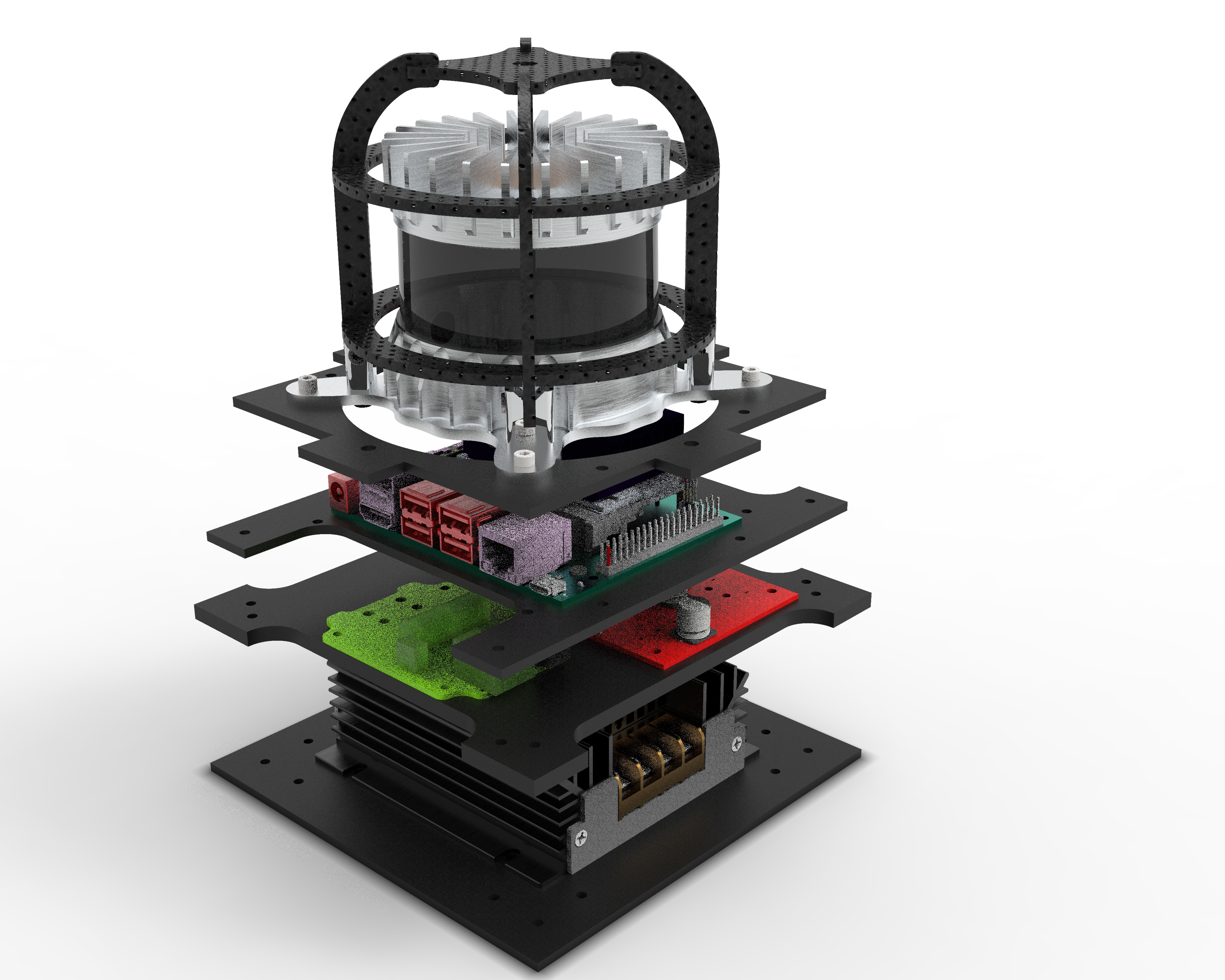 Sensor Tower consists of power brick(24VDC output), Power Distribution PCB, Lidar sensor and module, GPS Module, Computer, Cameras. The idea was to integrated all these components into a single compact stack so that the sensor tower can be assembled by a non-technical person for in field testing. Considering some basic principles of DFA and DFM I designed and manufactured the structure of sensor tower along with few electronics components such as the power distribution board.